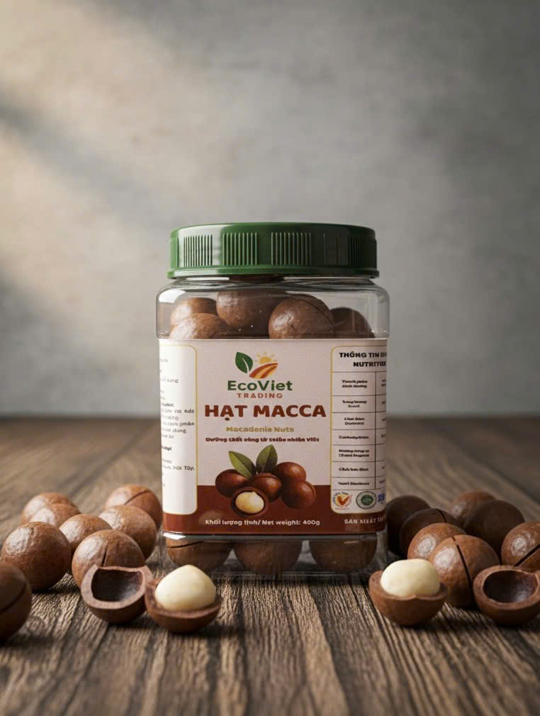 Hạt macca EcoViet là sự kết tinh của nguồn nguyên liệu chọn lọc và quy trình chế biến kiểm soát chất lượng, mang đến sản phẩm béo thơm – giàu dinh dưỡng – an toàn, phù hợp cho tiêu dùng và xuất khẩu bền vững.